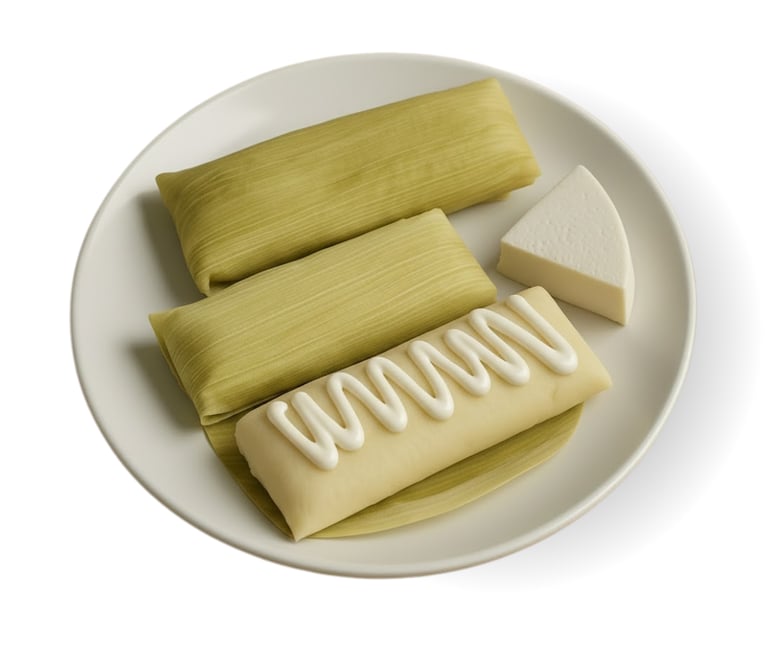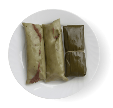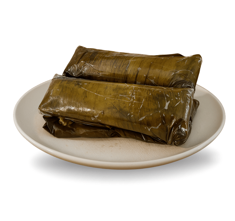 Tamales de pollo elaborados artesanalmente con maíz molido y el toque justo de especias, envueltos cuidadosamente en hoja de plátano y cocidos al vapor para conservar su textura suave y su inconfundible aroma casero.