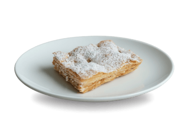 Hoja dulce tradicional con capas delgadas y crujientes, rellena de dulce de leche y espolvoreada con azúcar glas. Un clásico irresistible ideal para acompañar el café o disfrutar como un antojo dulce en cualquier momento.