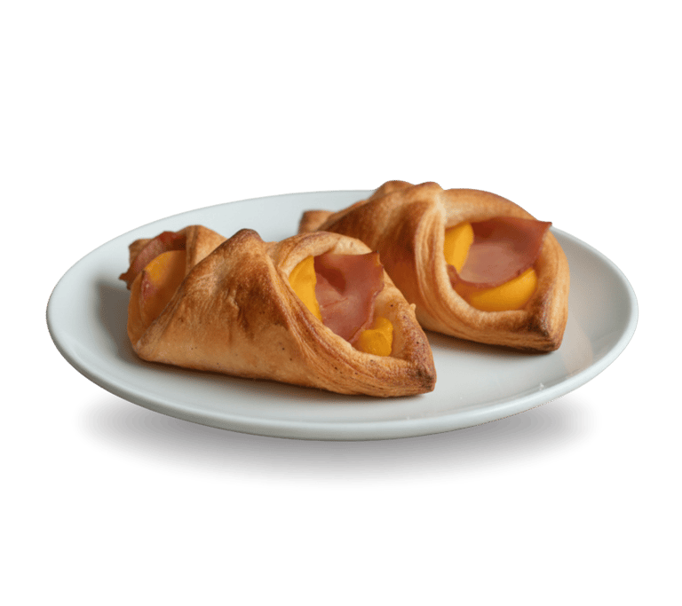 Relleno con jamón y queso envueltos en una masa hojaldrada irresistible, es ideal para disfrutar en el desayuno o como un antojo a cualquier hora del día.